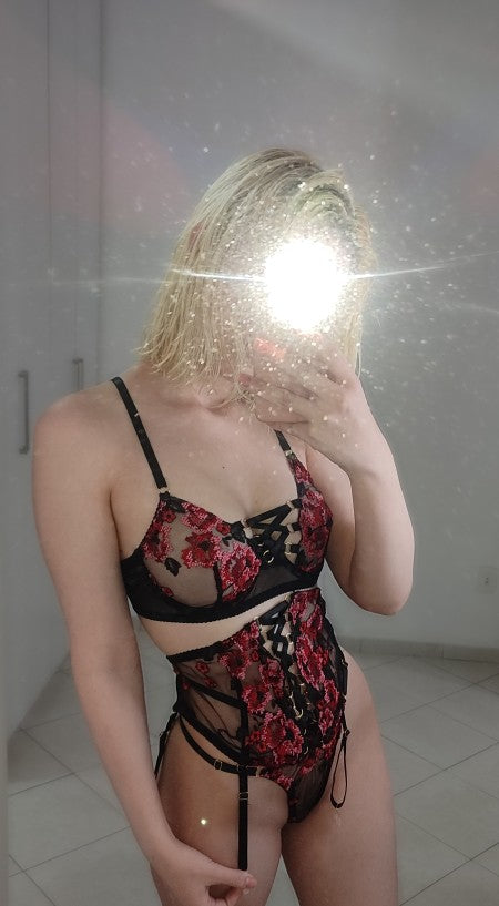 • Set i 4 delar – bh + strumpebandshållare + string + lårband